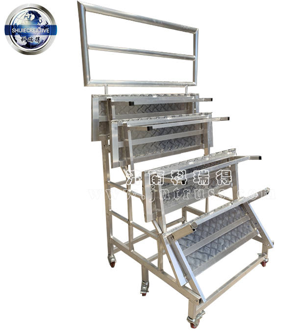 合唱臺(tái)整體可折疊,底下裝配滑輪,可方便移動(dòng)。
